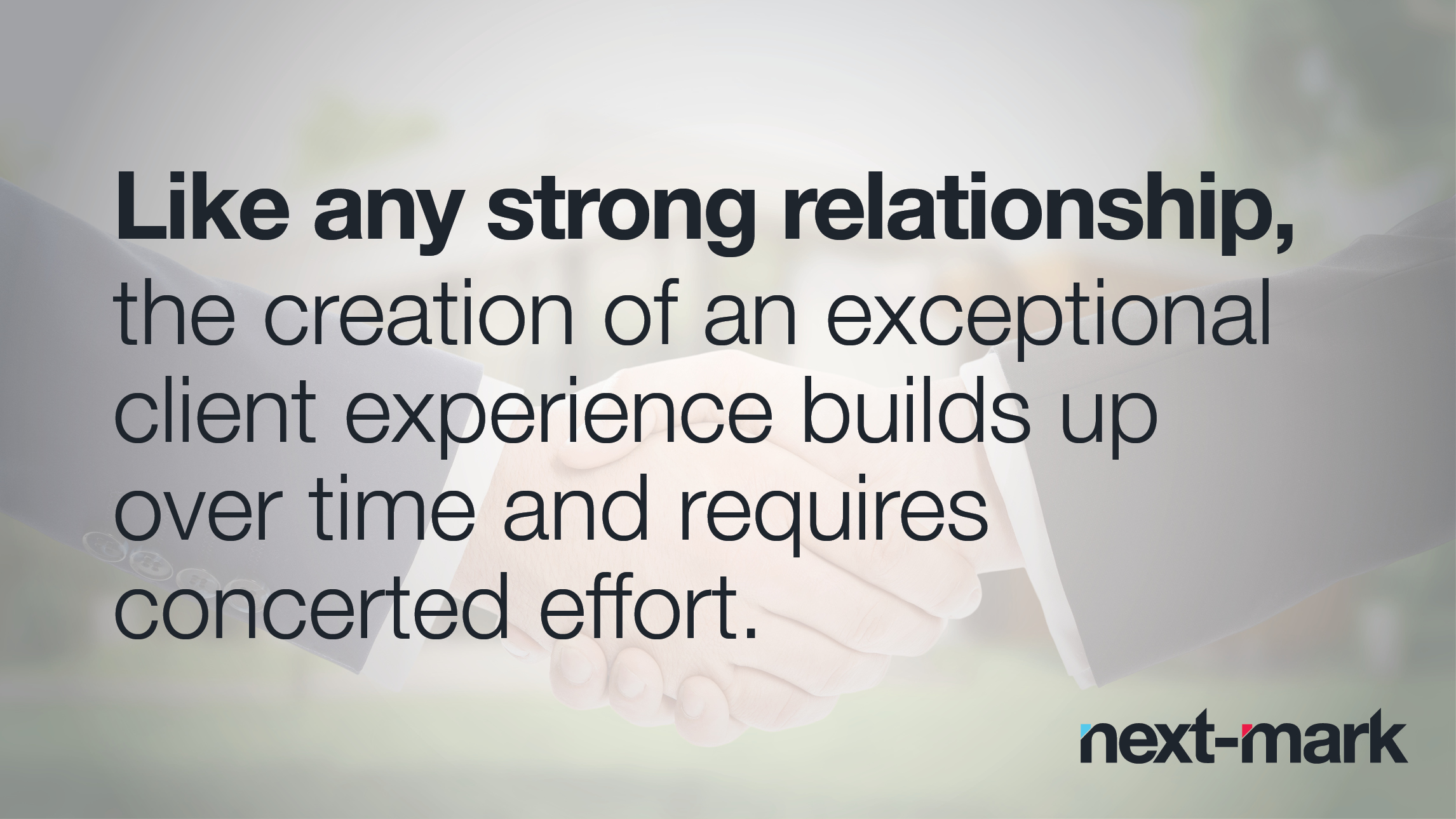 Like any strong relationship, the creation of an exceptional client experience builds up over time and requires concerted effort. And, as in any relationship worth pursuing, it requires regular tune-ups to keep it strong and never taking the connection for granted. In marketing, that means assuring the client stays on course but not on automatic pilot, engendering the confidence and loyalty that keeps the bond strong.